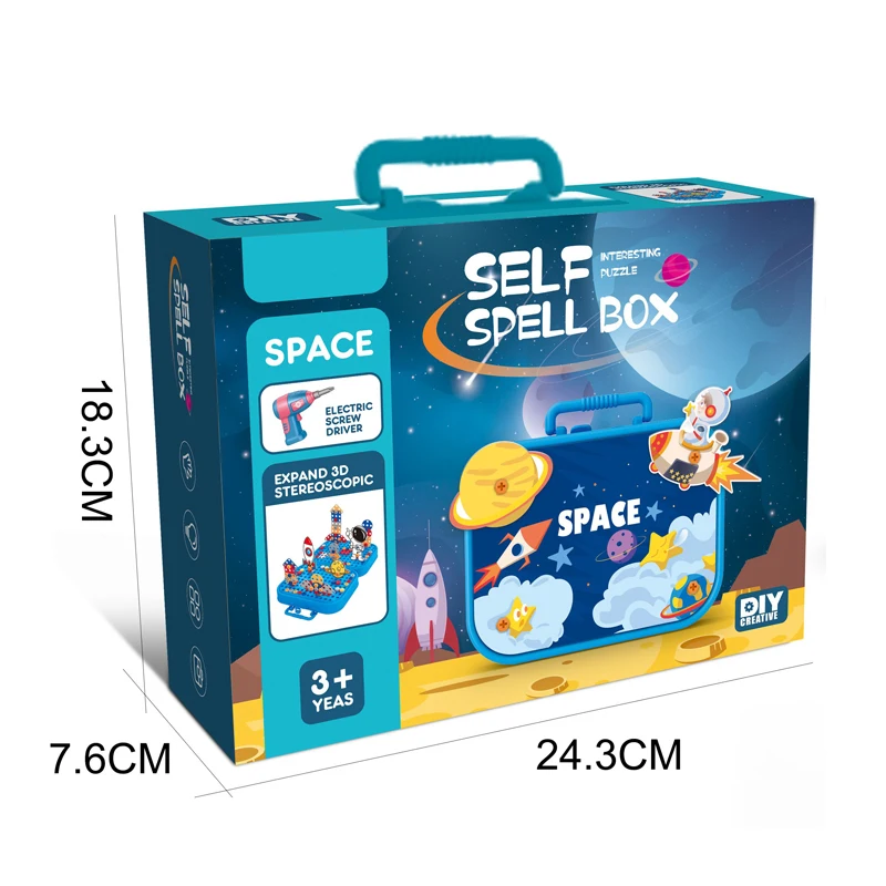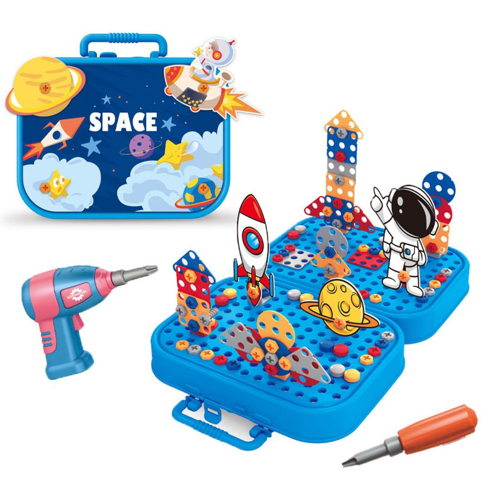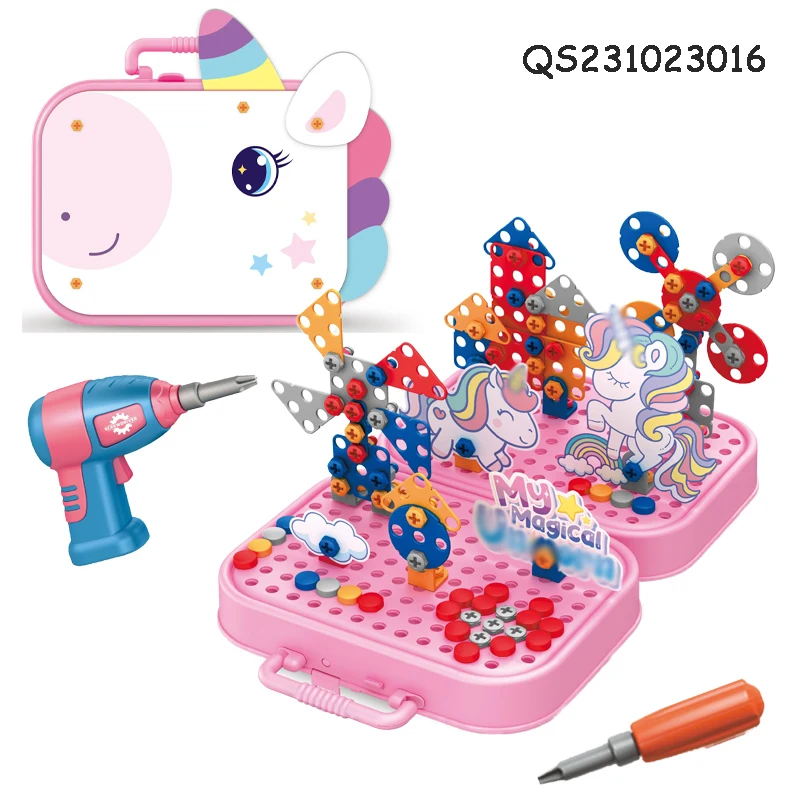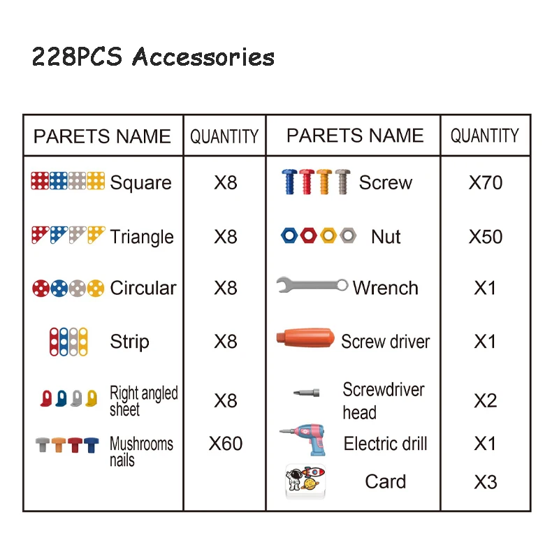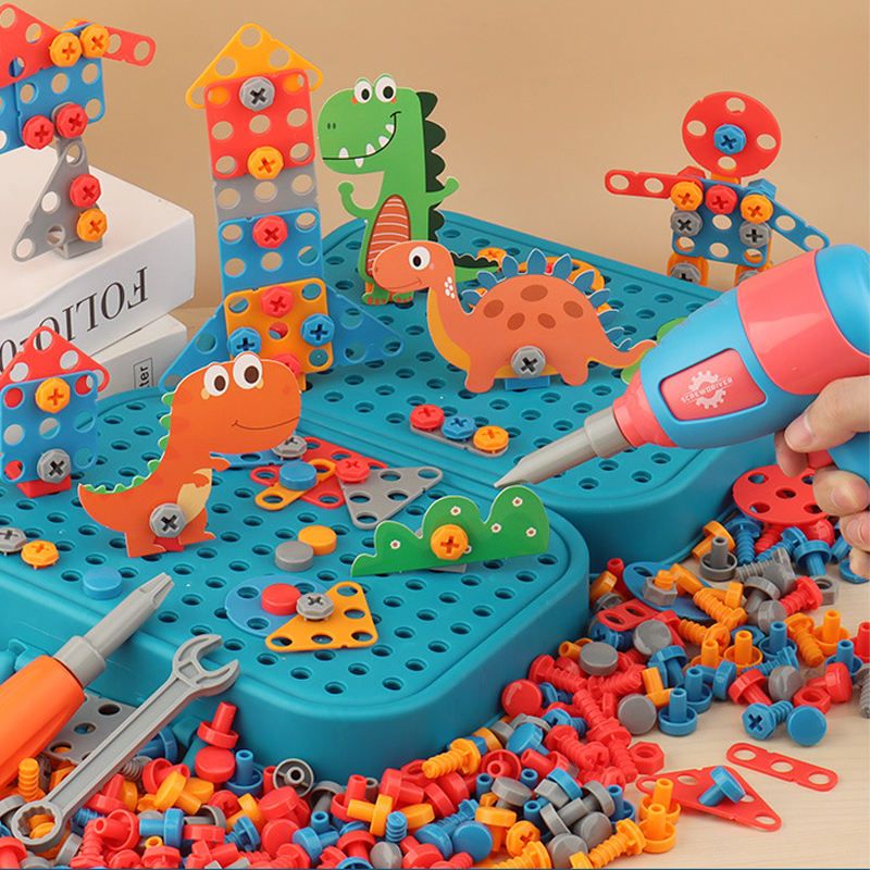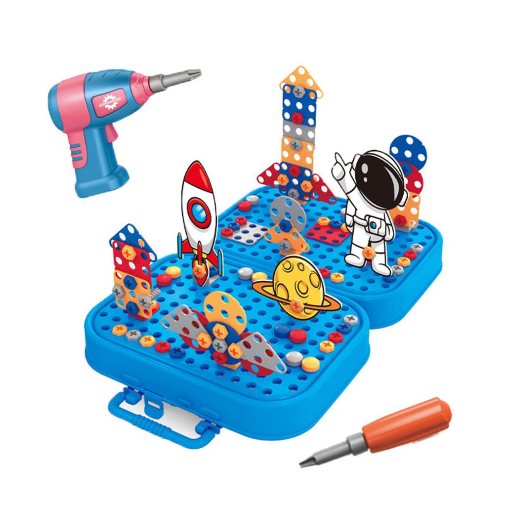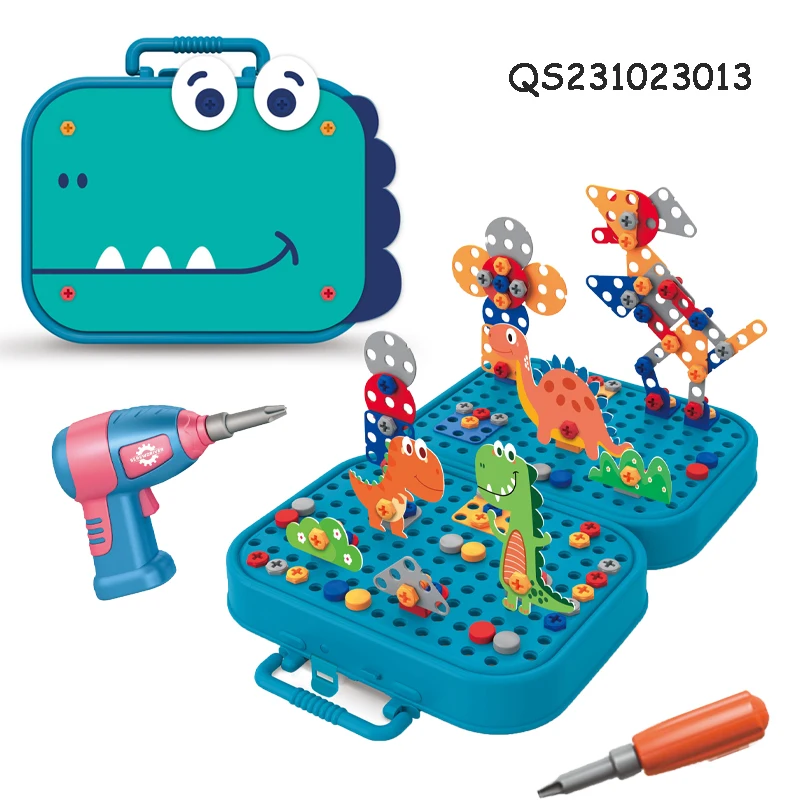 QS Customized 228PCS Building Block Toy Kids Educational Plastic 3D DIY Screw Puzzle Box Game Blocks Toys With Electric Drill